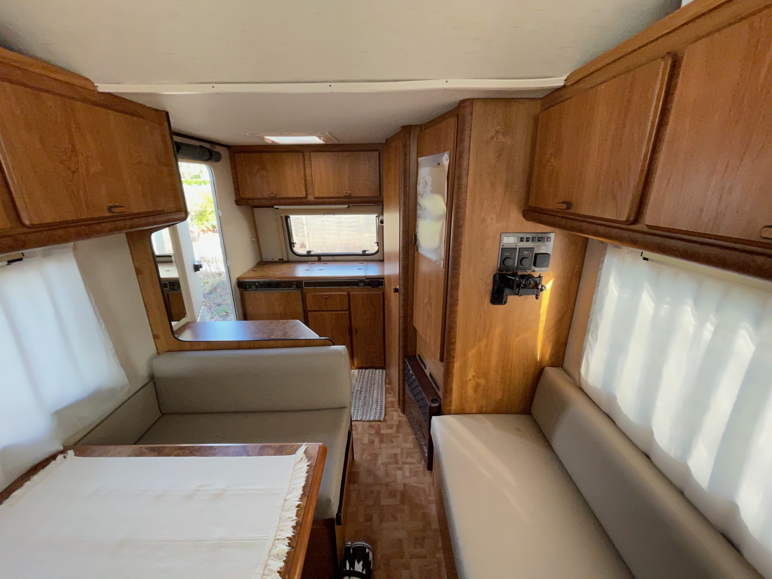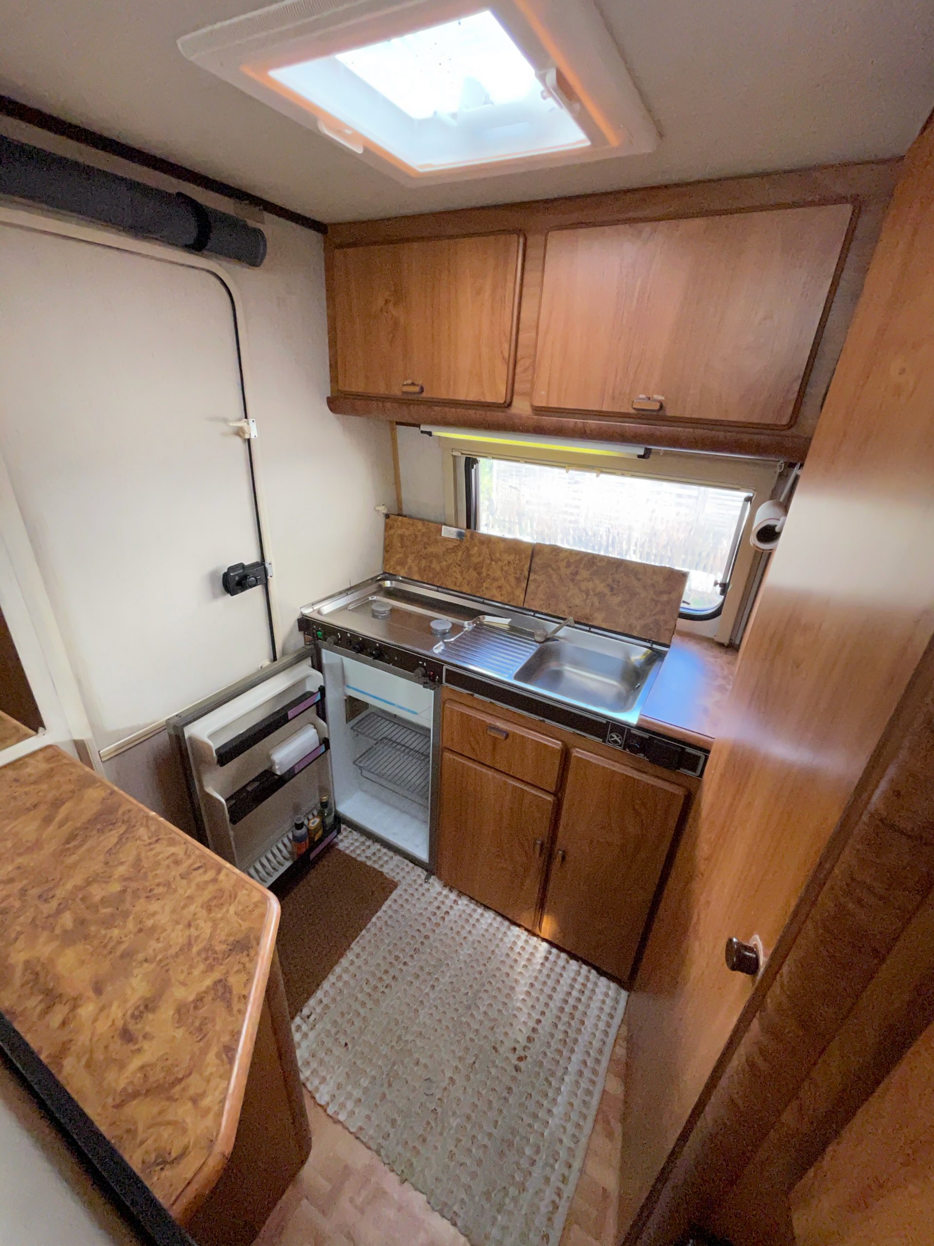 Ein echtes Oldtimer Wohnmobil Schmuckstück, fast drei Jahrzehnte alt: Ein Hymer Eriba Camp 55, Baujahr 1996, 75 PS Diesel, rund 115.000 km auf dem Tacho. Innen erstaunlich gepflegt, kein muffiger Geruch, keine übermäßigen Gebrauchsspuren. Der Verkäufer versprach Dichtigkeit, das Dach schien solide, die Fenster klar. Es roch angenehm und die Ausstattung war vollständig. Wir waren begeistert. Ziel: Das Fahrzeug soweit herrichten, dass man sich wohlfühlt – und ein H-Kennzeichen bekommen.