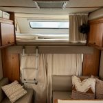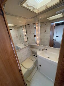 Einige Details fehlten oder waren defekt, ließen sich aber mit etwas Geduld und Glück ersetzen: Die Spiegeltür im Bad etwa – die war komplett verschwunden. In einer Wohnmobil-Werkstatt, die sich auf alte Hymer-Modelle spezialisiert hatte, fanden wir genau das passende Originalteil aus einem ausgeschlachteten Camp 55. Perfekter Zustand, perfekte Passform. Auch der Wasserhahn im Bad verabschiedete sich während eines Urlaubs. Im nächsten Campingladen in Holland wurden wir fündig – erstaunlicherweise exakt das gleiche Modell, das einst eingebaut war. Und als die Tauchpumpe streikte, war der Austausch schnell erledigt: Ein Standardteil, leicht zu montieren, und seither läuft das Wasser wieder zuverlässig. Aber wir haben gelernt: Bei einem alten Wohnmobil hat man besser gutes Werkzeug für Automobil, Möbel und Elektronik dabei…